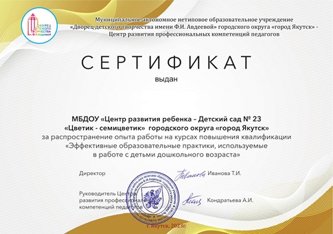 Воспитатель МБДОУ ЦРР детского сада N23 "Цветик-семицветик" г.Якутска